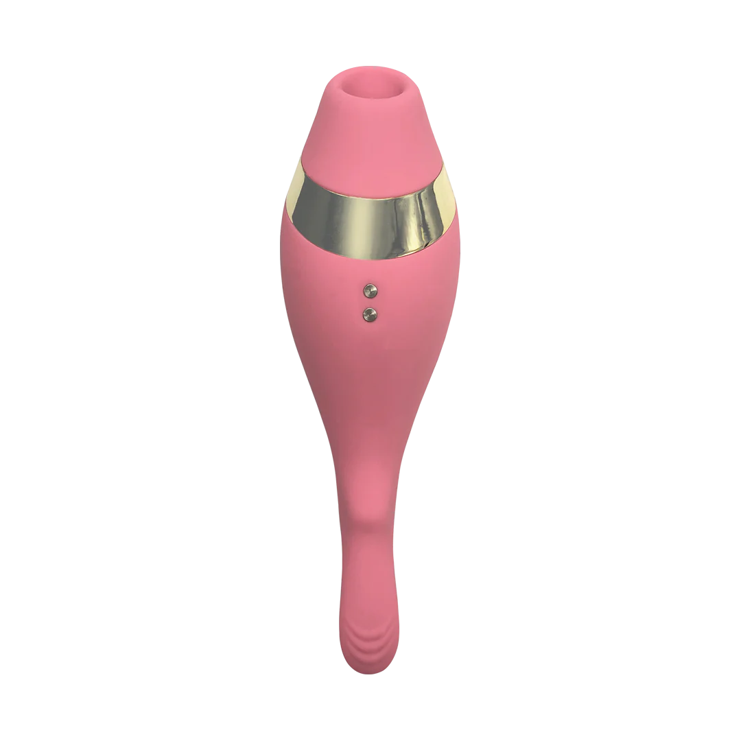 Meet your match with The Adventurer, an exclusive invitation to pleasure. This expertly crafted accessory allows you to explore new dimensions of desire with different types of clitoral stimulation. Set in premium silicone, the gold accent adds a luxe touch while the rounded shape fits perfectly in hand. Let the textured end tantalize with multiple vibration speeds and patterns or fit the accessory’s opening around the clitoris for air pressure that takes your breath away.