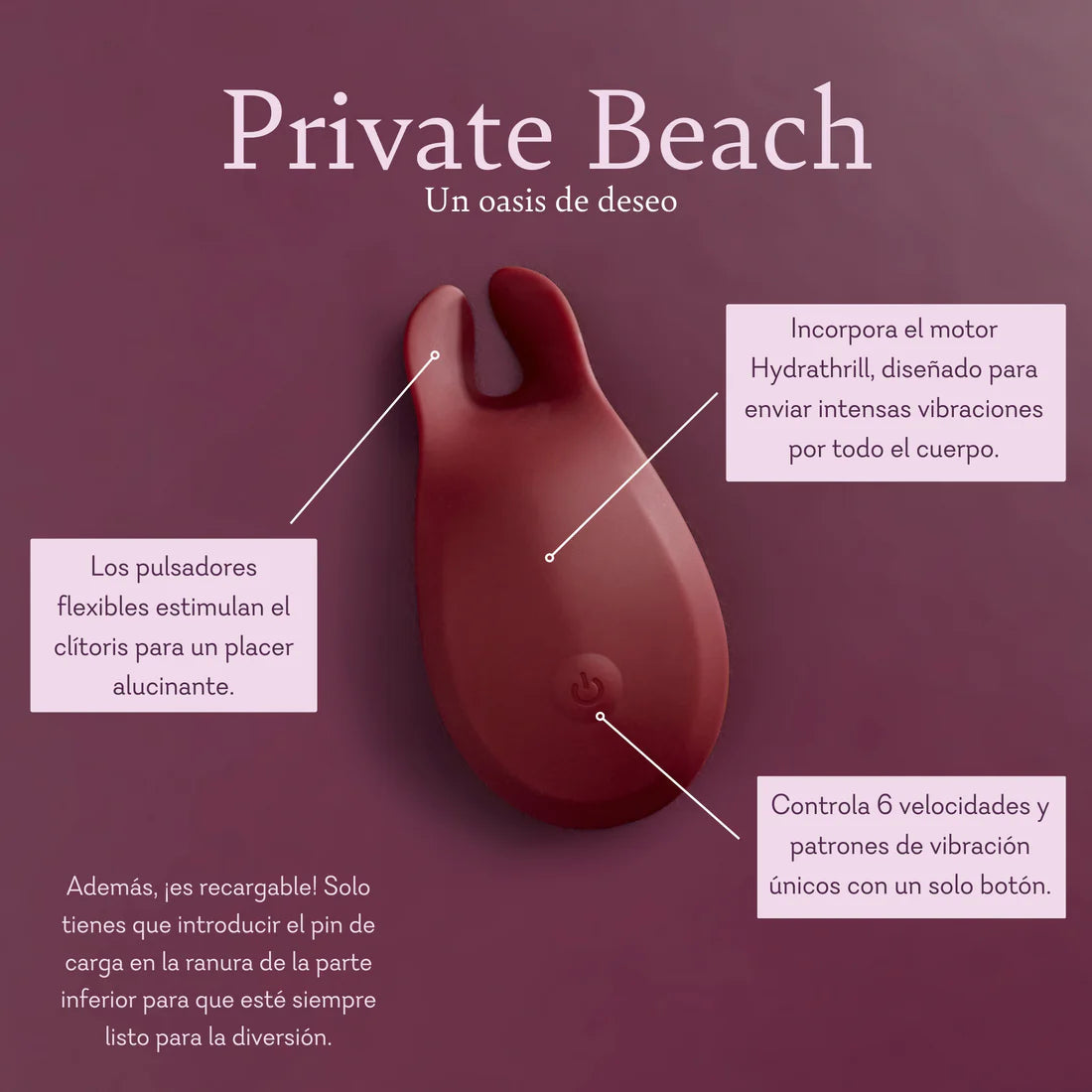 Dive into your own oasis of desire with Private Beach, a silicone clitoral vibrator with 6 seductive speeds and pulsing patterns. Get lost in the pleasure and thrill as Private Beach tantalizes your clitoris with flexible, uniquely-shaped ticklers that tease and please you with mind-blowing pleasure.
