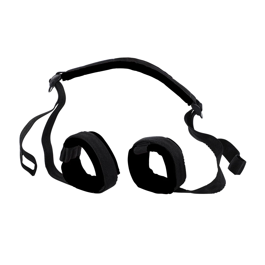 Secure padded cuffs to ankles and padded rest behind neck, then adjust to the desired length.
