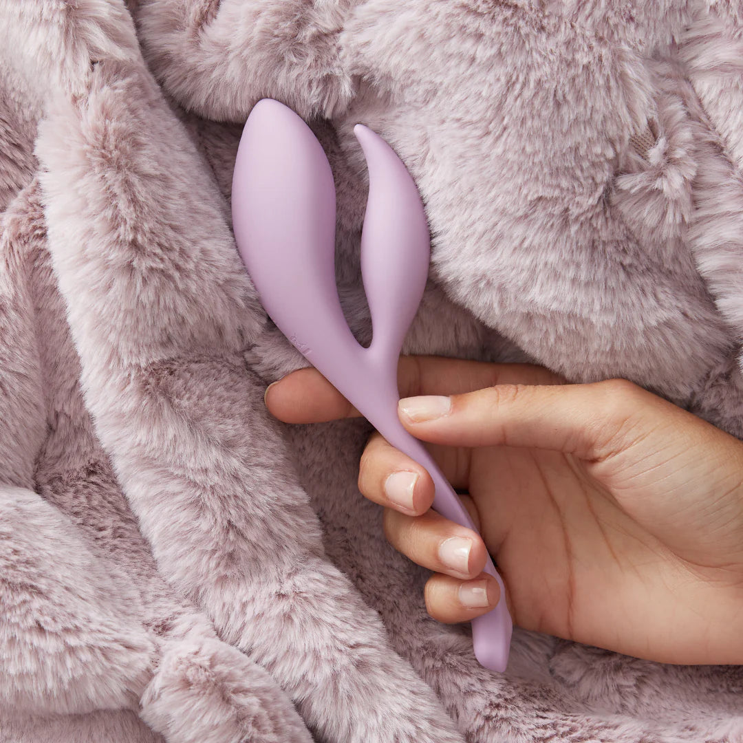 With so much sensation, keeping quiet might just be hard to handle… This dual-action vibrator pleasures with simultaneous stimulation and a pleasure-minded design that’s sure to take you over the edge. It’s all in the shape: a thick shaft that curves around your G-spot, and a flexible arm that nestles against your vulva and clitoris for that constant contact you crave. Grab this limited-edition toy to end your day with a bang or for fireworks anytime you like.