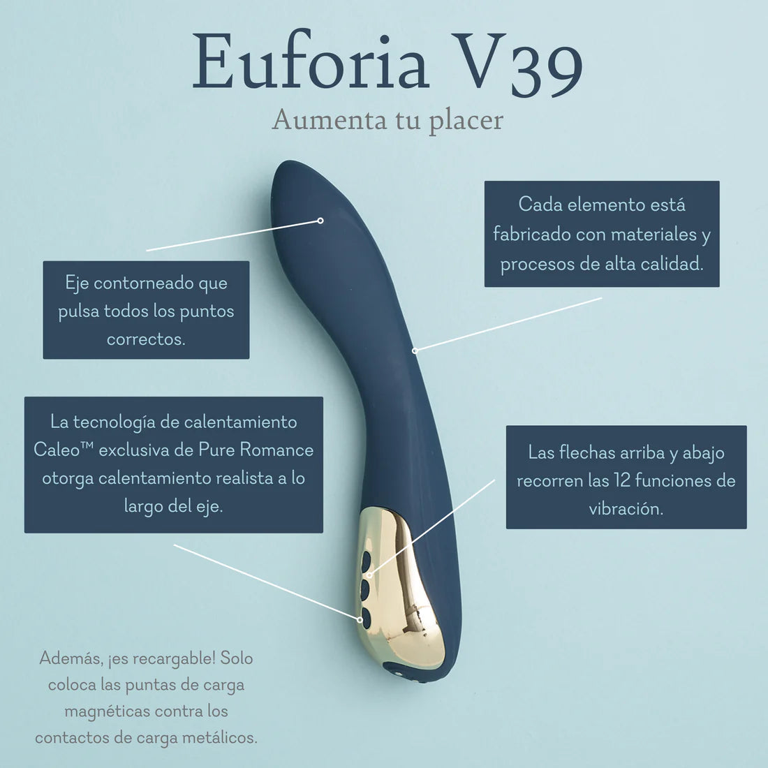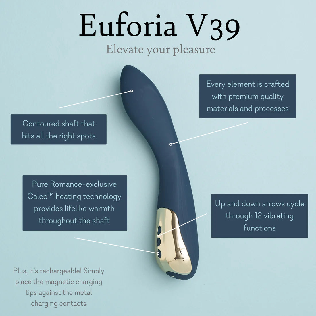 ● Sensual Heating Element: Pure Romance-exclusive Caleo™ heating technology enhances each vibration with tantalizing warmth, up to 104°/40°C, for a new dimension of pleasure.