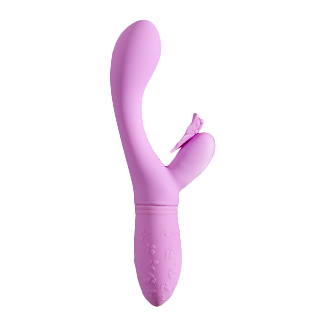 Introducing Fluttervibe, the silicone dual-action vibrator that'll make your fantasies take flight! The curvy shaft and butterfly-shaped teaser vibrate together with your choice of 10 thrilling functions. Add a little G-spot stimulation to your flight of fancy by angling the textured tip against your pleasure point. Or use it to tease deeper hotspots while the butterfly wings flutter against your clitoris! However, you decide to explore your own secret garden, you’re sure to reach new heights of pleasure.