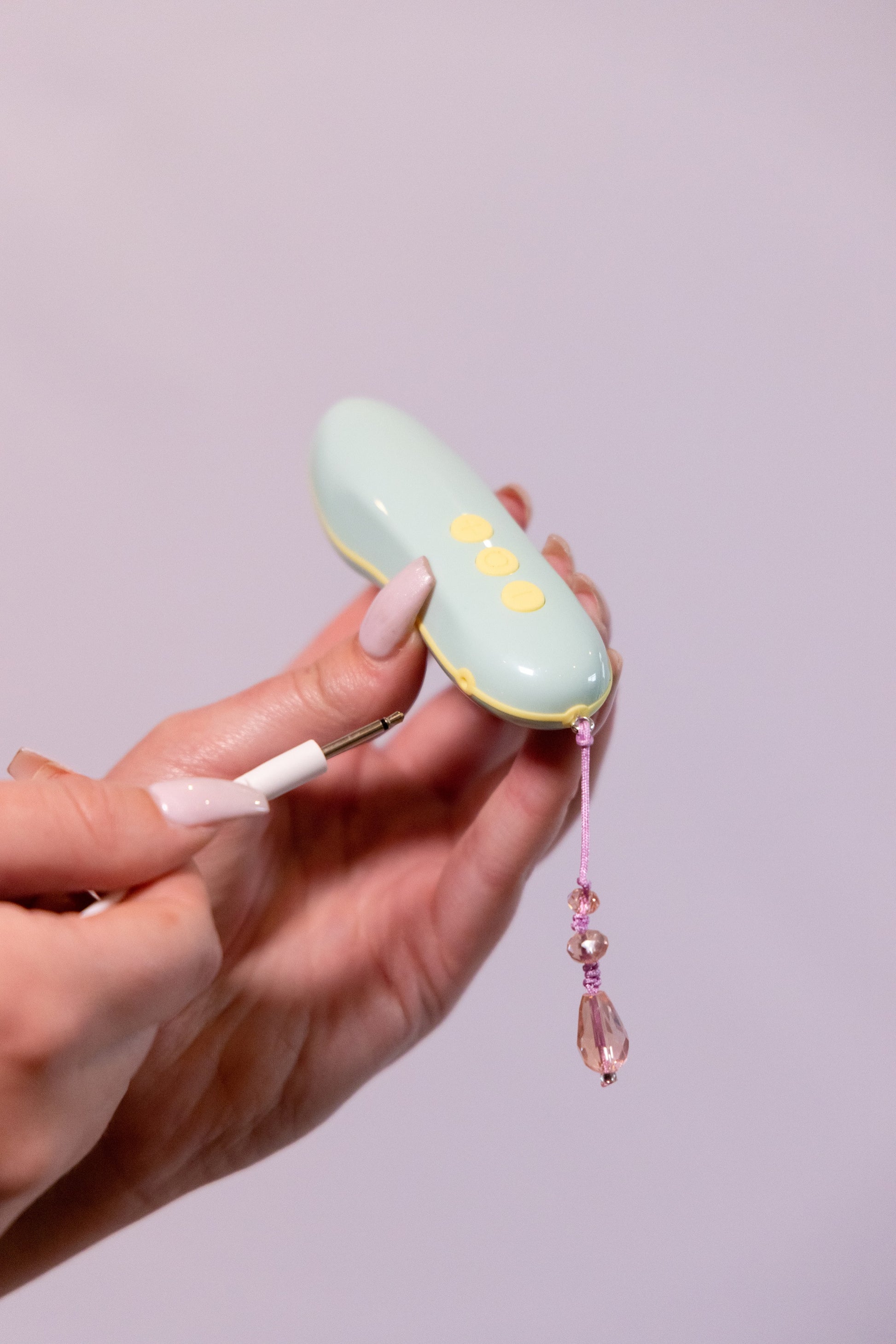 The sleek, powerful bullet features 10 vibration functions and can be used with the attachments or on its own for targeted clitoral or body stimulation.