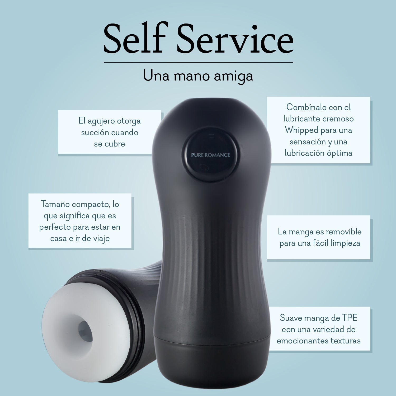 It’s time to give a hand to Self Service, our sleek and compact masturbator. Featuring a super soft sleeve and tantalizing texture, Self Service is the perfect enhancement to your solo sessions. Just apply a creamy lubricant, like Whipped, slide in, and enjoy. The included air hole provides on-demand suction for a heightened experience, and the sleeve itself is removable so it’s easy to clean and dry.